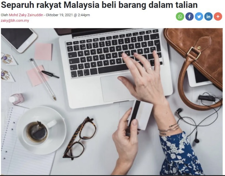 peratus pengguna di Malaysia beralih kepada kaedah dalam talian sebagai saluran